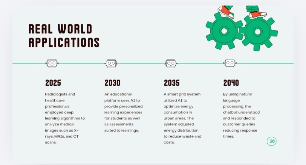 Artificial Intelligence has numerous applications in real-life situations, including the medical, banking, education, transport, and entertainment sectors. It assists doctors in diagnosing patients, banks in detecting fraud, students in learning through personalized learning systems, and drivers in navigating through smart traffic systems. Online shopping and streaming sites also apply AI in recommending products, movies, and songs based on the interests of the users. Voice assistants and smart home devices are other examples of how AI is making life easier and more efficient.