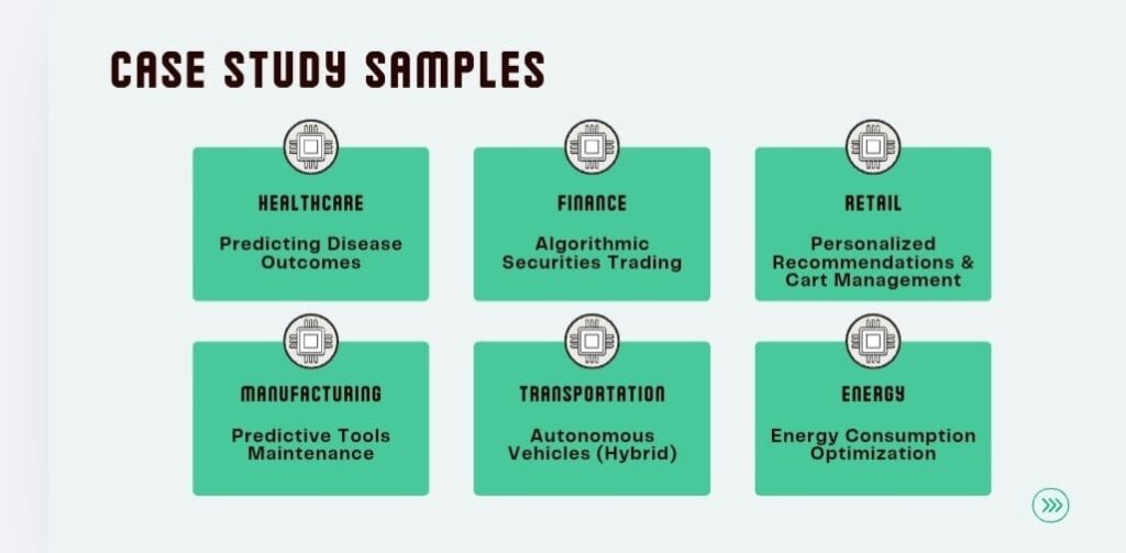 | Chatbots for customer service | Voice assistants | Self-driving cars and smart transport |
